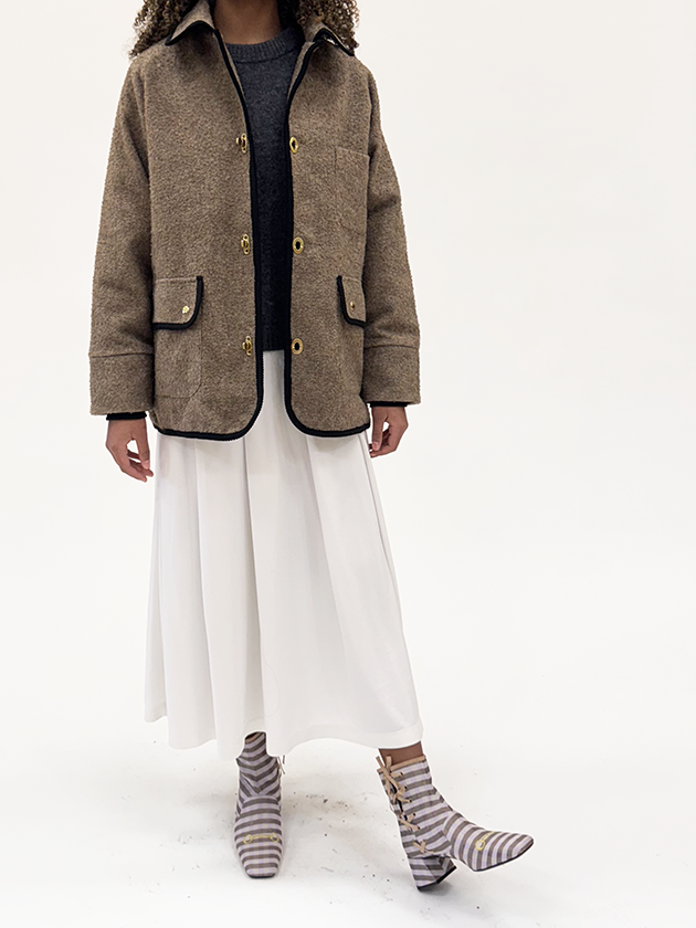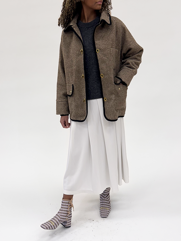*Casentino wool is a historic, rugged Italian wool from Tuscany's Casentino Valley, known for its distinctive fuzzy, curled texture, and exceptional warmth, durability, and water resistance. The cloth is heavily brushed by a process known as rattinatura, which helps to compress it and give it its signature fuzziness, as well as improving its ability to keep you warm and dry.