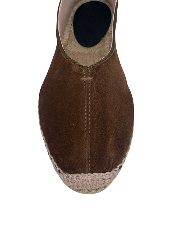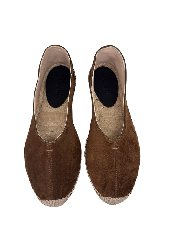 authentic spanish made espadrille slip-ons. soft suede upper, leather lining, jute sides and rubber soles.